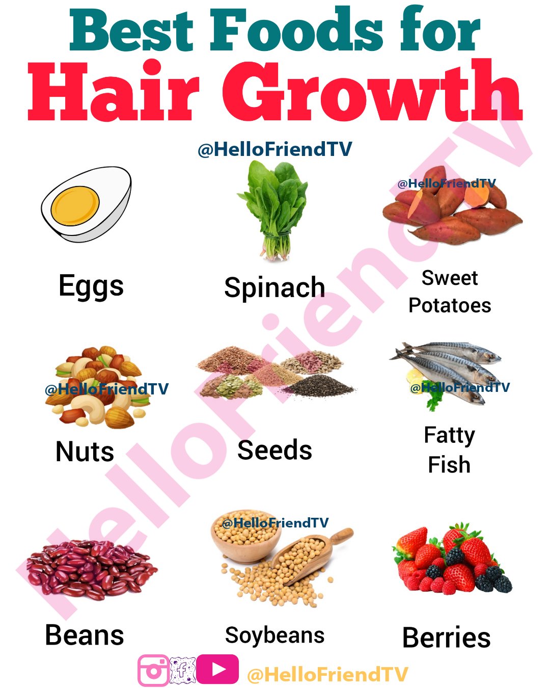 26 best foods for hair growth, according to experts · the best foods for hair growth · almond butter · tangerines · salmon · spinach · eggs · greek . Foods that helps in hair growth · 1) eggs. Choose chicken, turkey, fish, dairy products and eggs as excellent sources . You'll find protein and iron in greek yogurt, making it an ideal food for hair growth. Diet and healthy hair · salmon, tuna, mackerel, and other fatty fish · flaxseed oil, flaxseeds, chia seeds, canola oil · walnuts · soy beans, tofu .